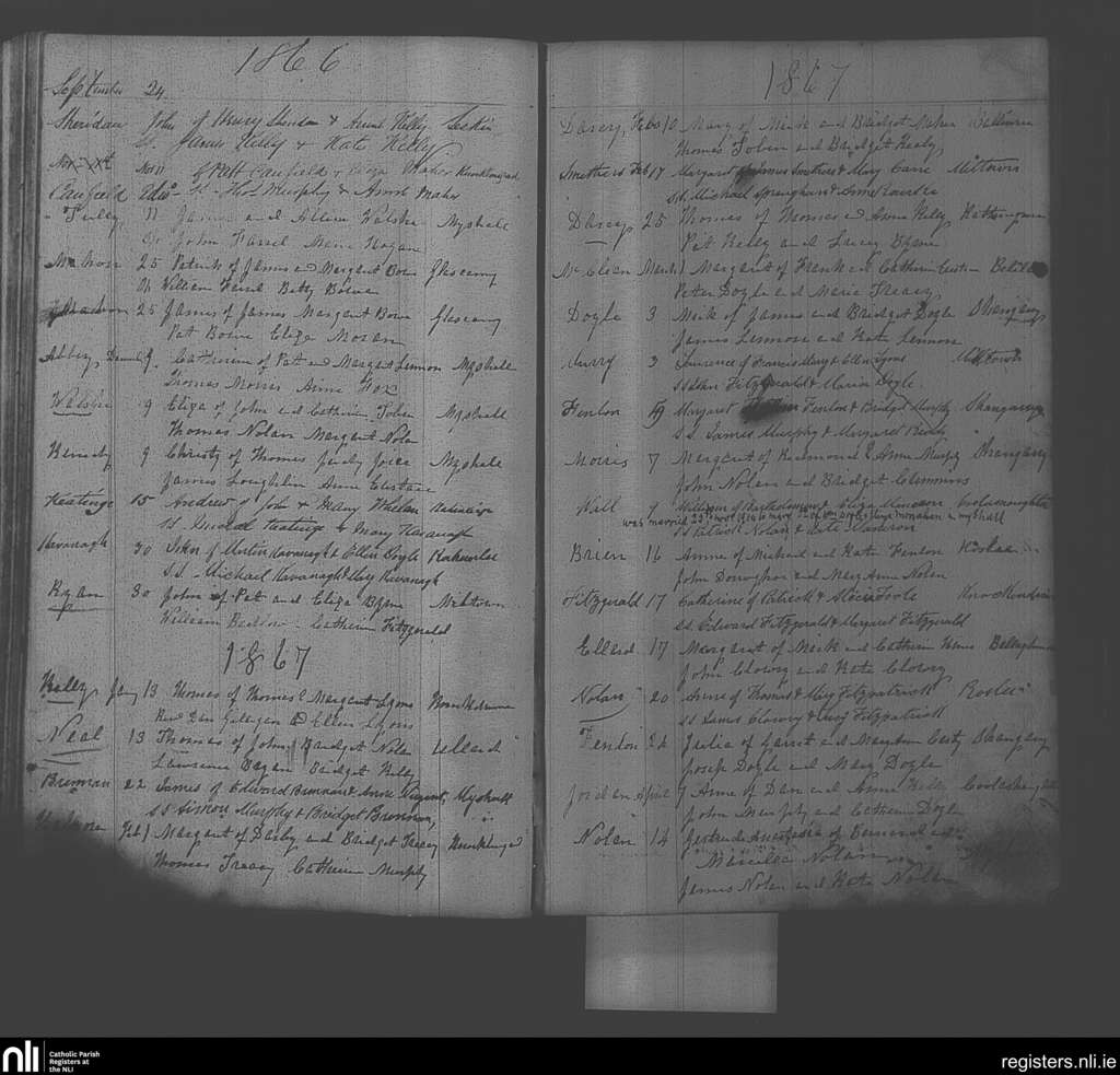 Myshall; County of Carlow; Diocese of Kildare and Leighlin. Baptisms, Marriages, Sep. 1866 to Nov. 1914