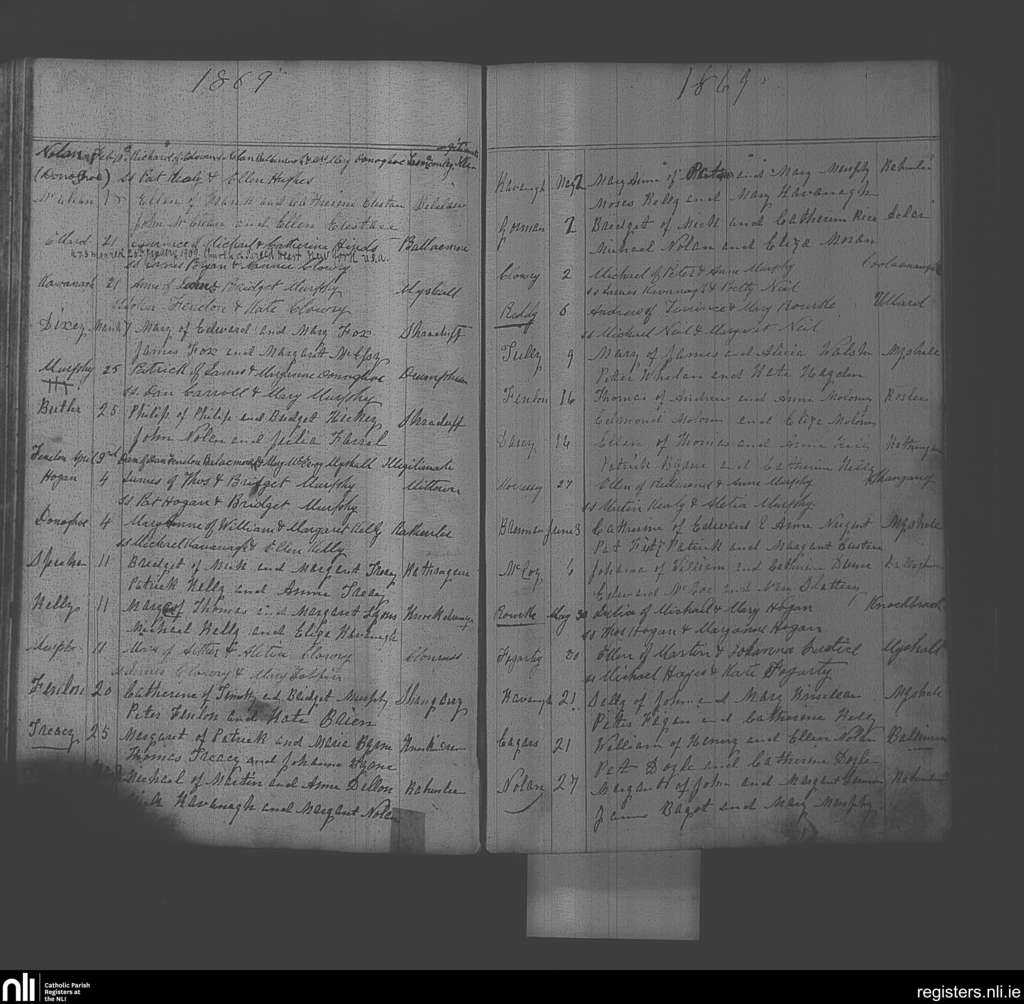 Myshall; County of Carlow; Diocese of Kildare and Leighlin. Baptisms, Marriages, Feb. 1869 to Jan. 1909