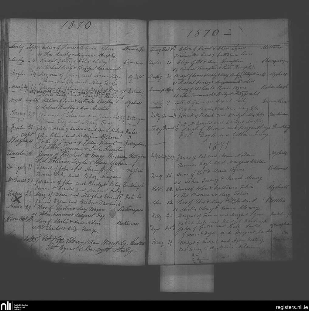 Myshall; County of Carlow; Diocese of Kildare and Leighlin. Baptisms, Marriages, July 1870 to July 1911