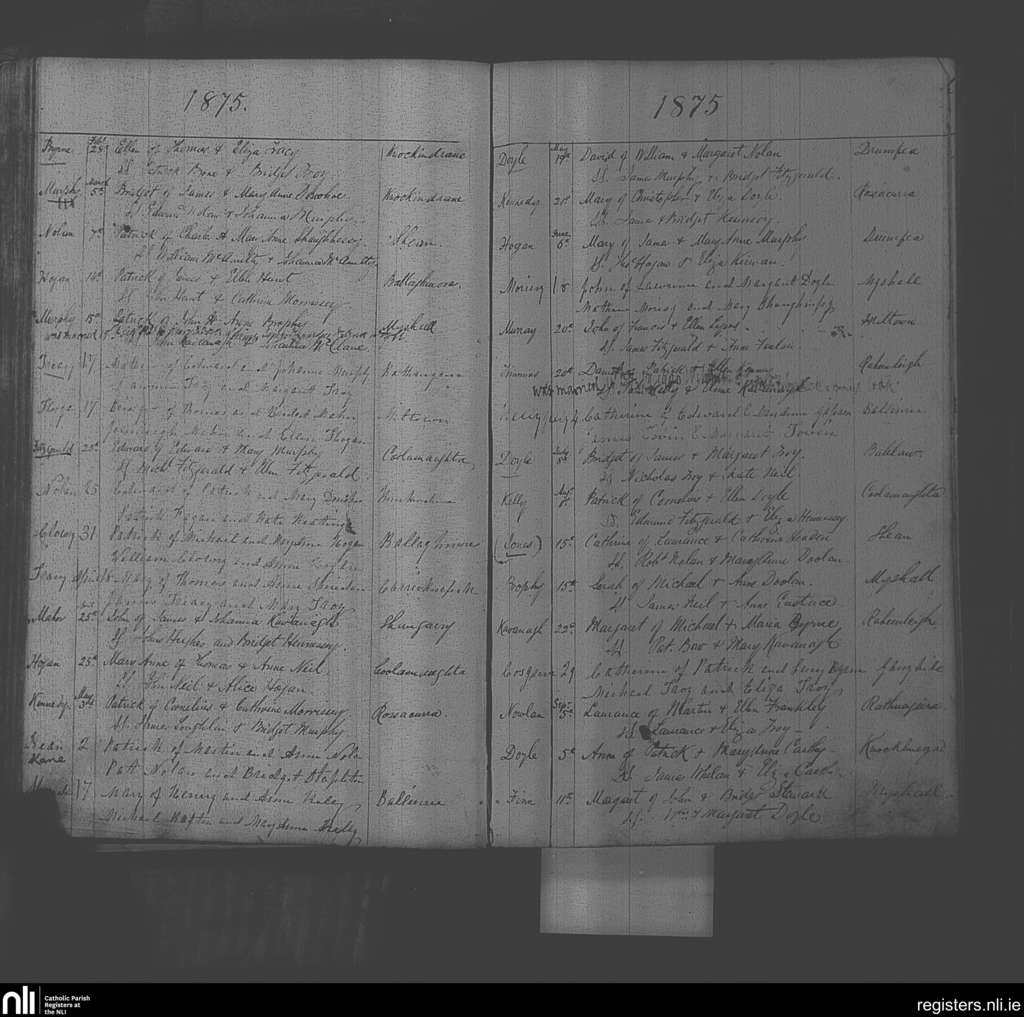 Myshall; County of Carlow; Diocese of Kildare and Leighlin. Baptisms, Marriages, Feb. 1875 to Feb. 1920
