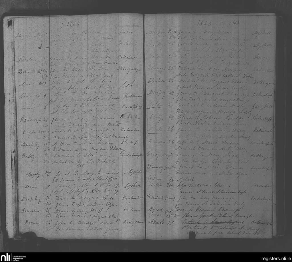Myshall; County of Carlow; Diocese of Kildare and Leighlin. Marriages, May 1864 to Oct. 1865