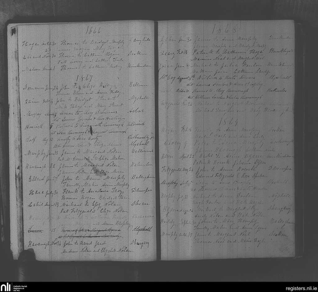 Myshall; County of Carlow; Diocese of Kildare and Leighlin. Marriages, Oct. 1866 to Oct. 1869