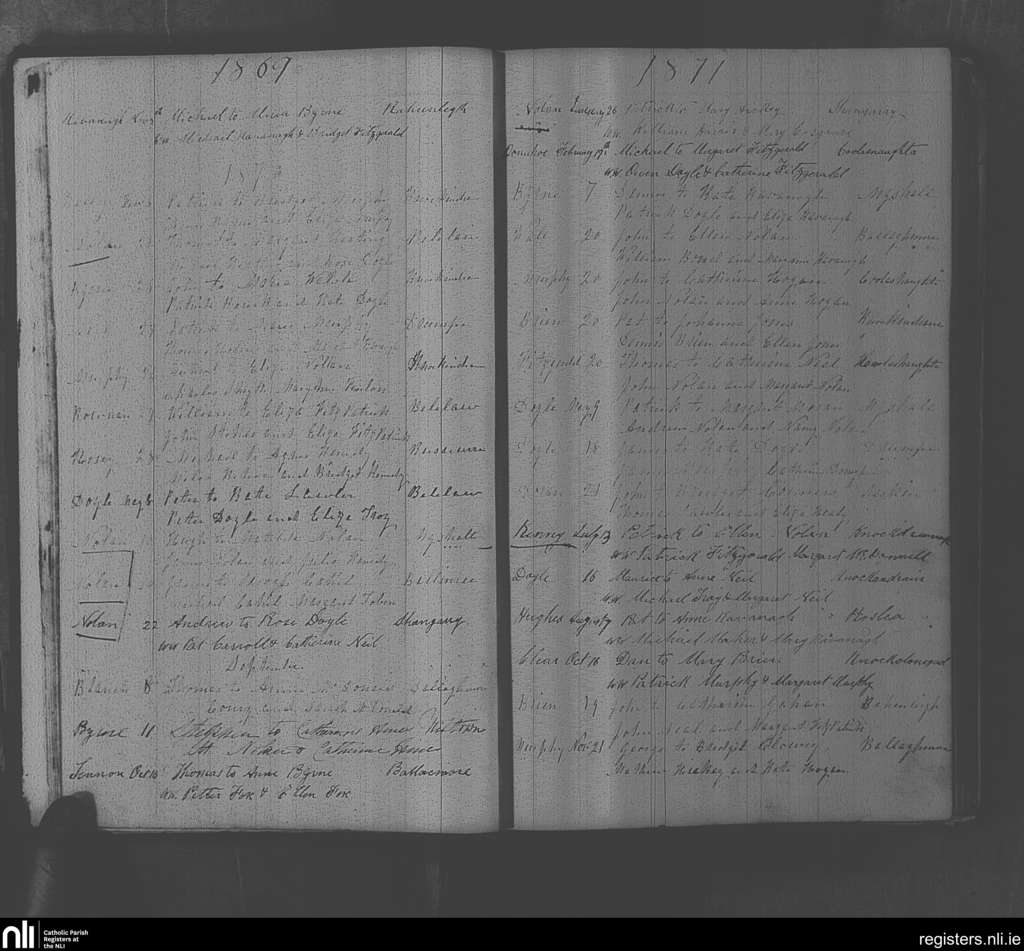 Myshall; County of Carlow; Diocese of Kildare and Leighlin. Marriages, Nov. 1869 to Nov. 1871
