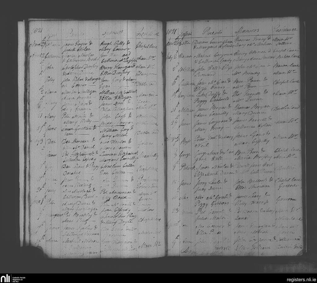 Naas; County of Kildare; Diocese of Kildare and Leighlin. Baptisms, Mar. 1821 to Sep. 1821
