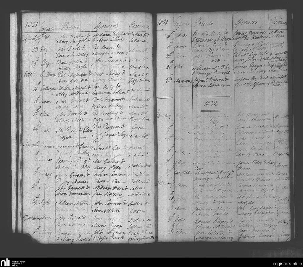 Naas; County of Kildare; Diocese of Kildare and Leighlin. Baptisms, Sep. 1821 to Feb. 1822
