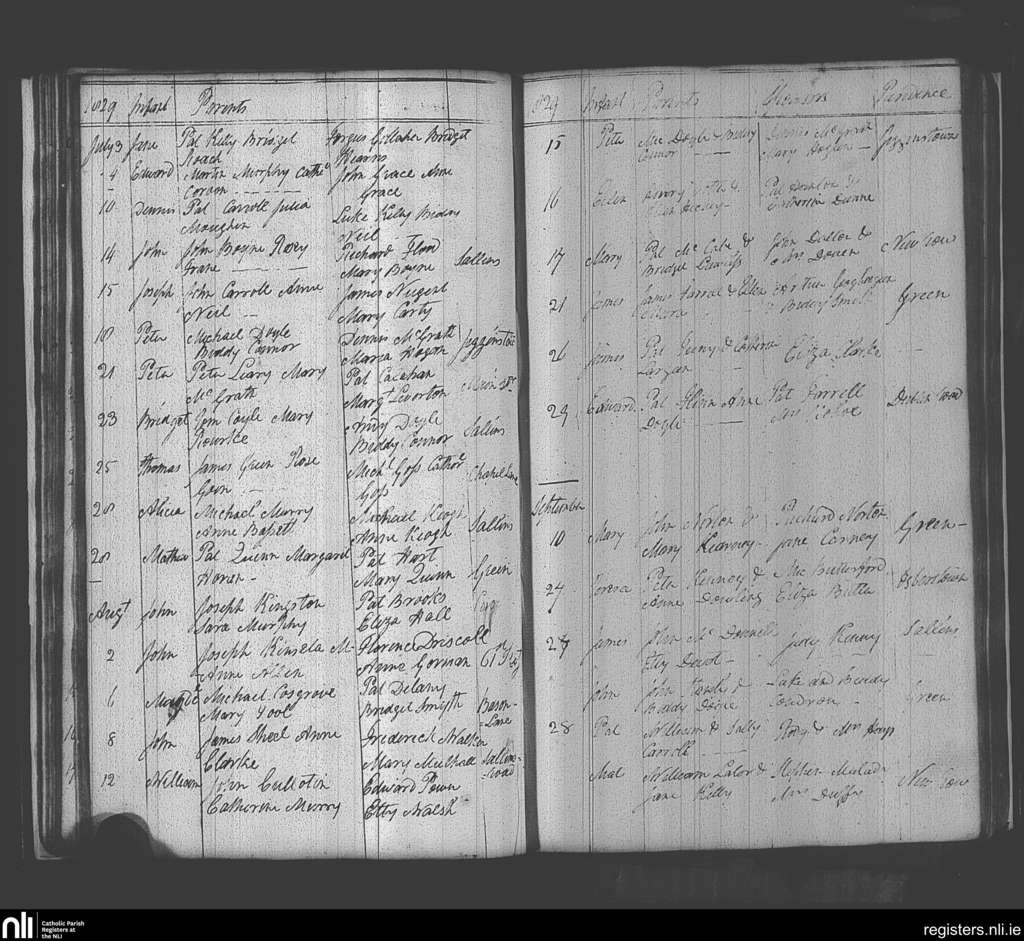 Naas; County of Kildare; Diocese of Kildare and Leighlin. Baptisms, July 1829 to Sep. 1829