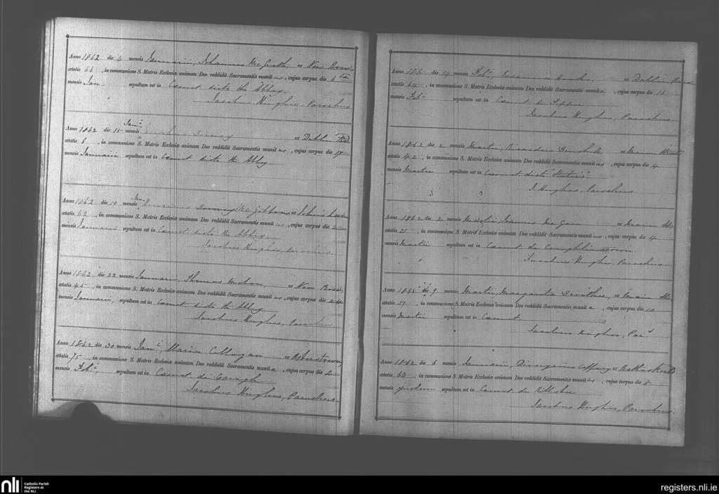 Naas; County of Kildare; Diocese of Kildare and Leighlin. Deaths, Jan. 1862 to Mar. 1862
