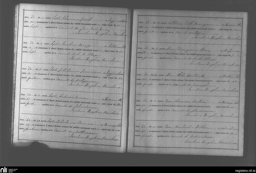 Naas; County of Kildare; Diocese of Kildare and Leighlin. Deaths, Sep. 1862 to Dec. 1862