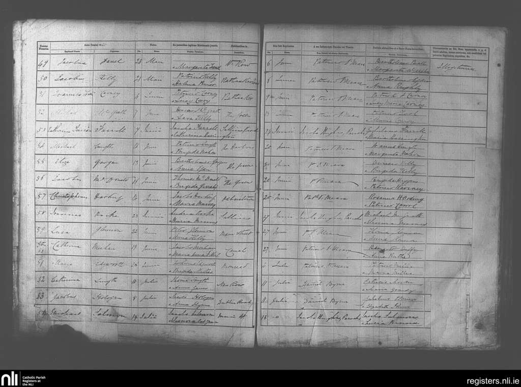 Naas; County of Kildare; Diocese of Kildare and Leighlin. Baptisms, June 1865 to July 1865