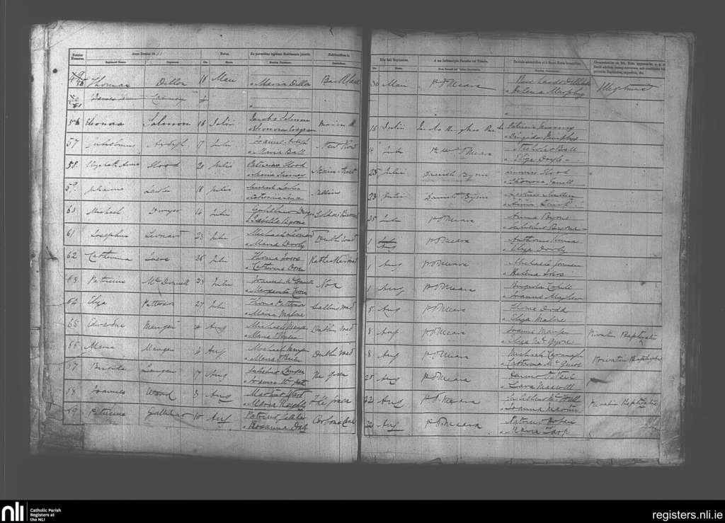 Naas; County of Kildare; Diocese of Kildare and Leighlin. Baptisms, May 1865 to Aug. 1865