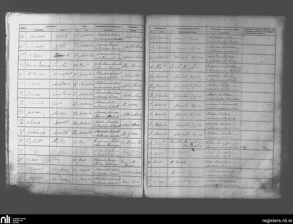 Naas; County of Kildare; Diocese of Kildare and Leighlin. Baptisms, Nov. 1865 to Jan. 1866