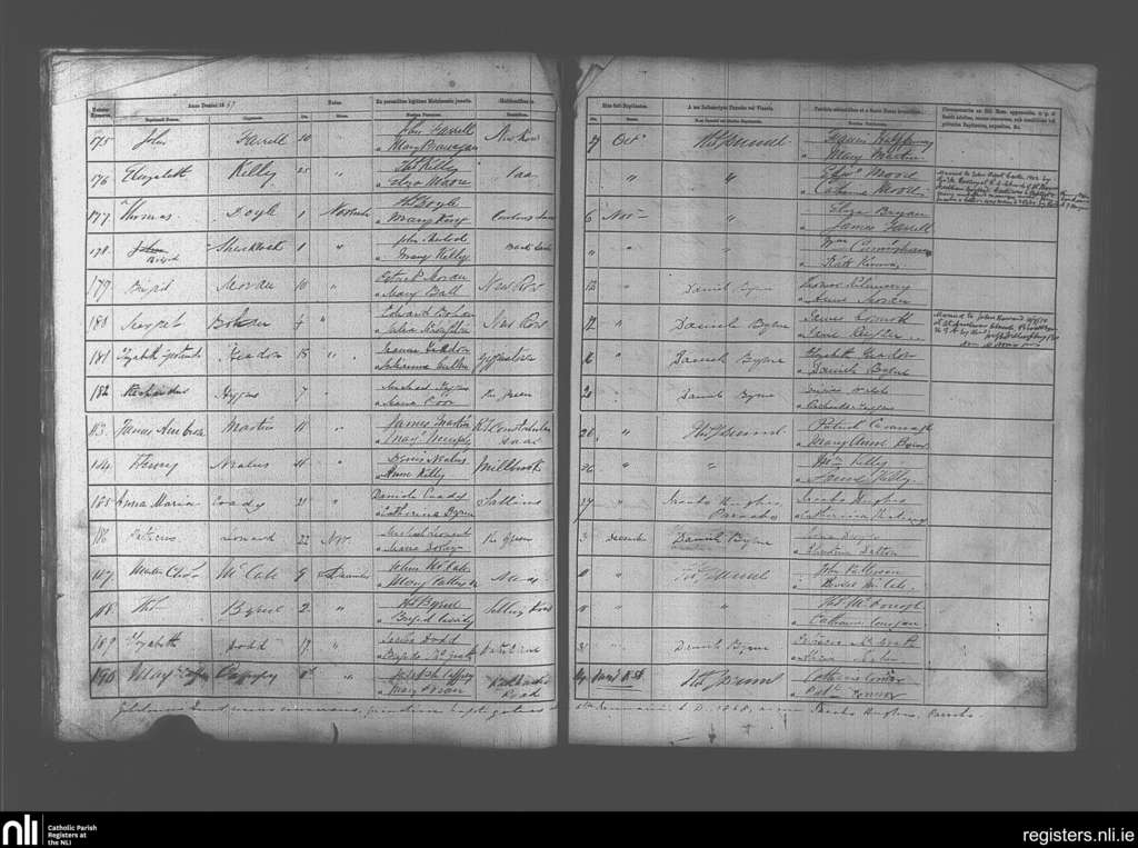 Naas; County of Kildare; Diocese of Kildare and Leighlin. Baptisms, Oct. 1867 to Jan. 1868