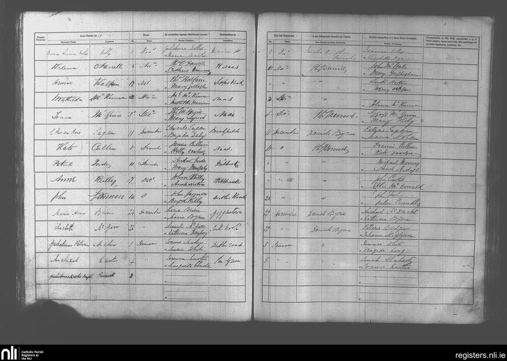 Naas; County of Kildare; Diocese of Kildare and Leighlin. Baptisms, Nov. 1868 to Jan. 1869