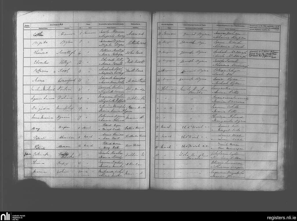 Naas; County of Kildare; Diocese of Kildare and Leighlin. Baptisms, Jan. 1869 to Mar. 1869