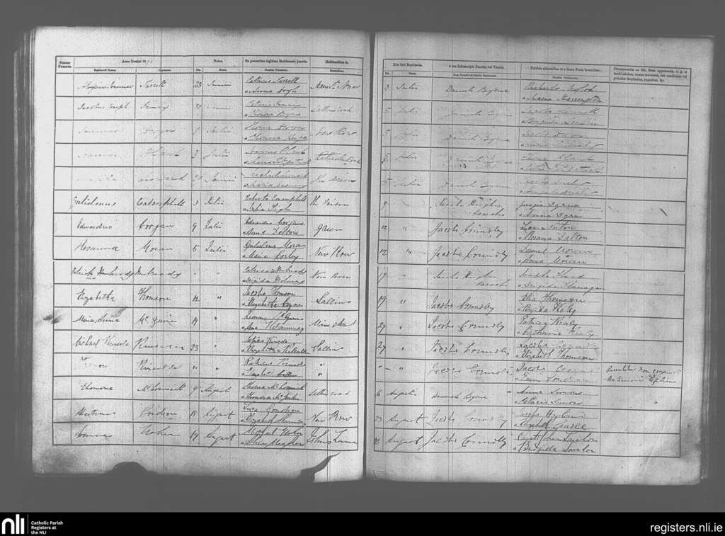 Naas; County of Kildare; Diocese of Kildare and Leighlin. Baptisms, July 1870 to Aug. 1870