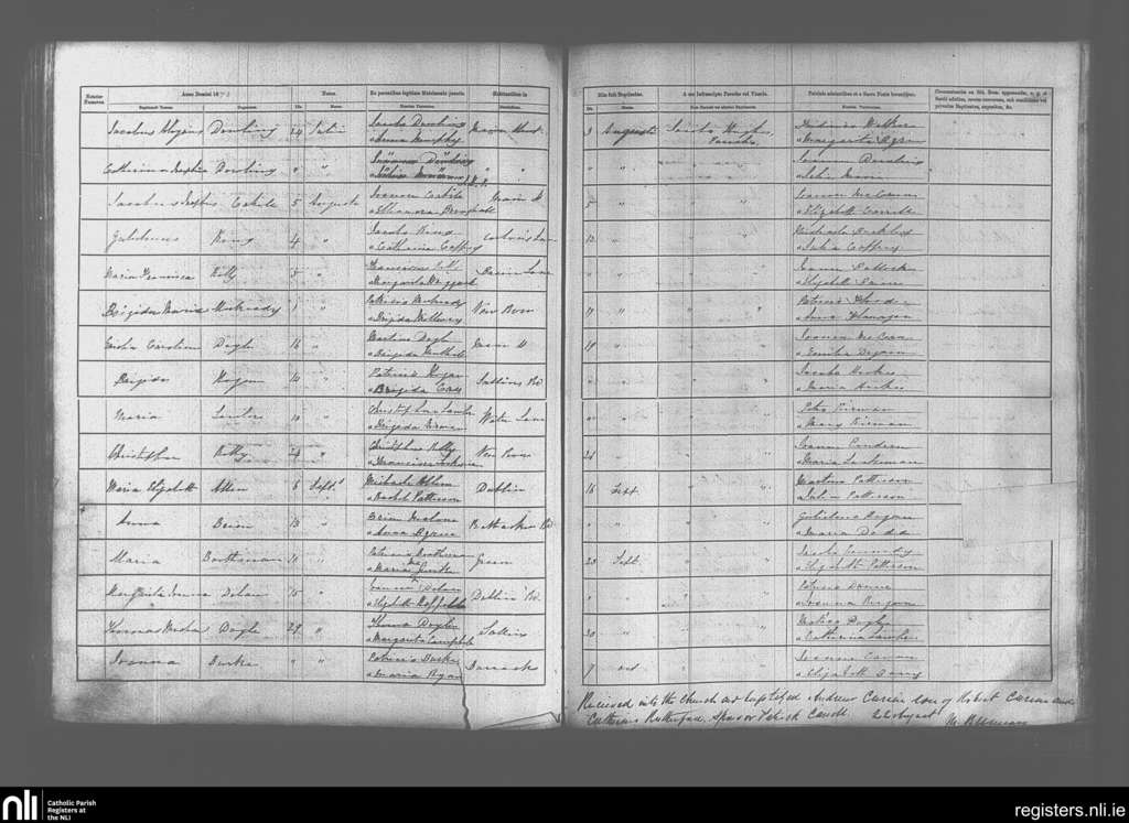 Naas; County of Kildare; Diocese of Kildare and Leighlin. Baptisms, Aug. 1873 to Oct. 1873