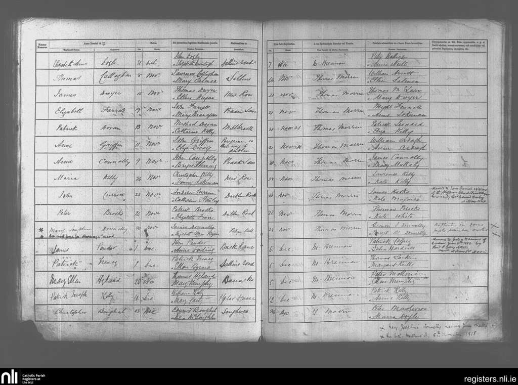 Naas; County of Kildare; Diocese of Kildare and Leighlin. Baptisms, Nov. 1876 to Dec. 1876