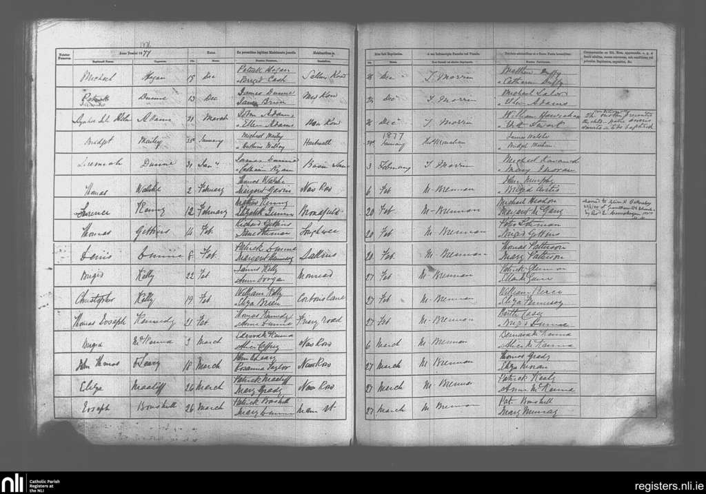 Naas; County of Kildare; Diocese of Kildare and Leighlin. Baptisms, Dec. 1876 to Mar. 1877