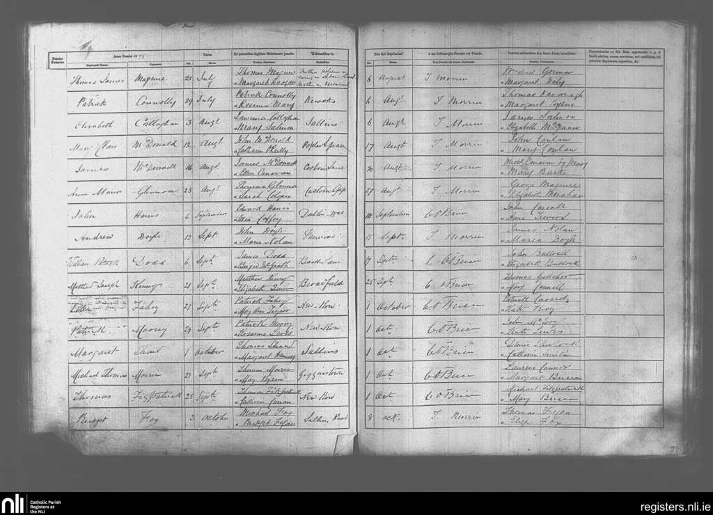 Naas; County of Kildare; Diocese of Kildare and Leighlin. Baptisms, Aug. 1878 to Oct. 1878