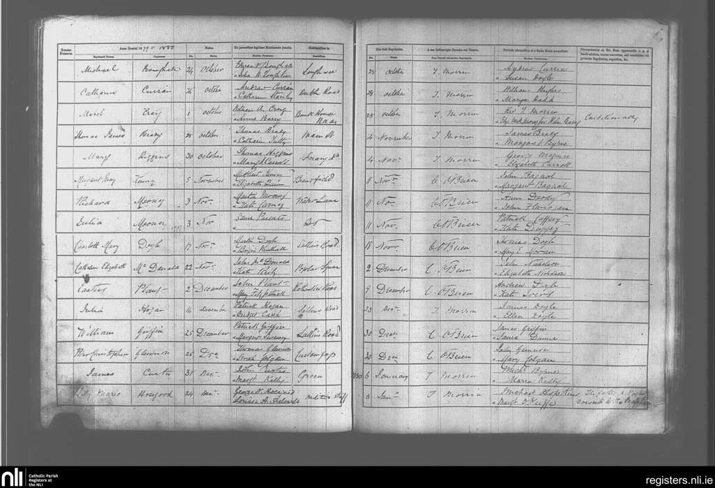 Naas; County of Kildare; Diocese of Kildare and Leighlin. Baptisms, Oct. 1879 to Jan. 1880