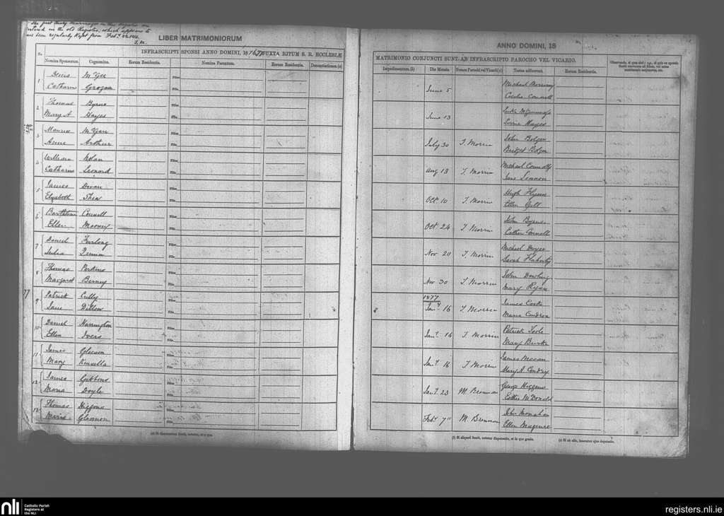 Naas; County of Kildare; Diocese of Kildare and Leighlin. Marriages, June 1876 to Feb. 1877