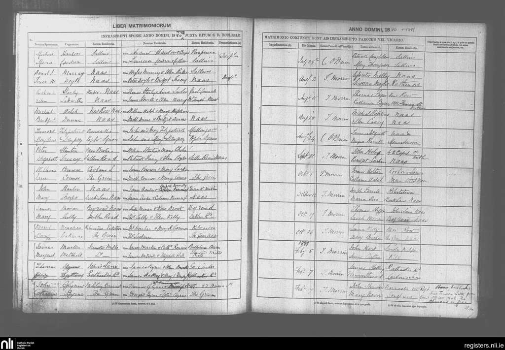 Naas; County of Kildare; Diocese of Kildare and Leighlin. Marriages, July 1880 to Feb. 1881