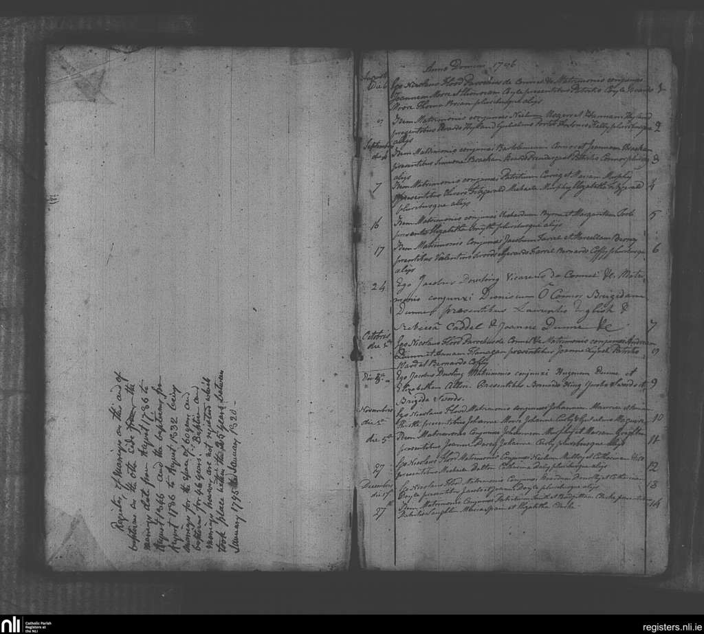 Newbridge; County of Kildare; Diocese of Kildare and Leighlin. Marriages, Aug. 1786 to Dec. 1786