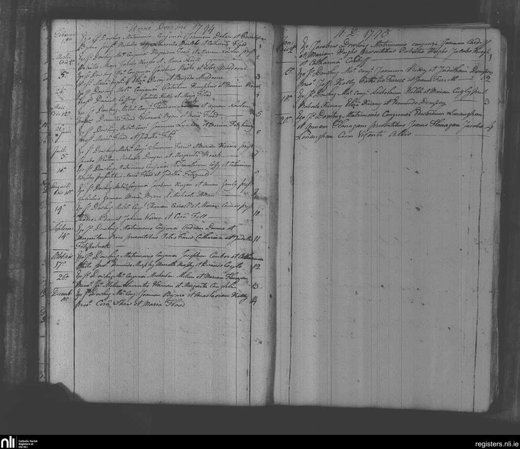 Newbridge; County of Kildare; Diocese of Kildare and Leighlin. Marriages, Feb. 1794 to Jan. 1795