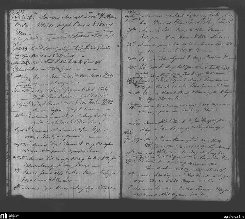 Newbridge; County of Kildare; Diocese of Kildare and Leighlin. Marriages, Feb. 1822 to Apr. 1823