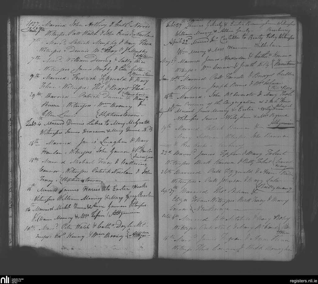 Newbridge; County of Kildare; Diocese of Kildare and Leighlin. Marriages, Jan. 1827 to Oct. 1827