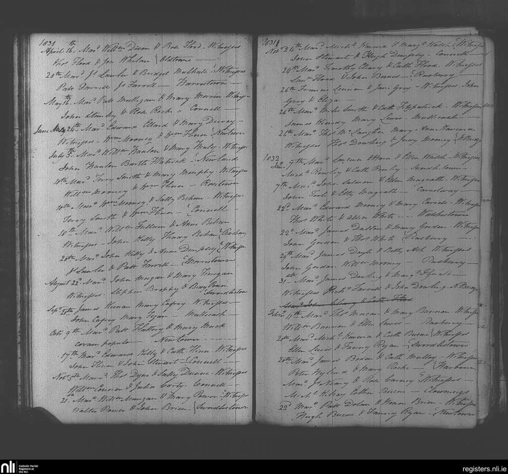 Newbridge; County of Kildare; Diocese of Kildare and Leighlin. Marriages, Apr. 1831 to Feb. 1832