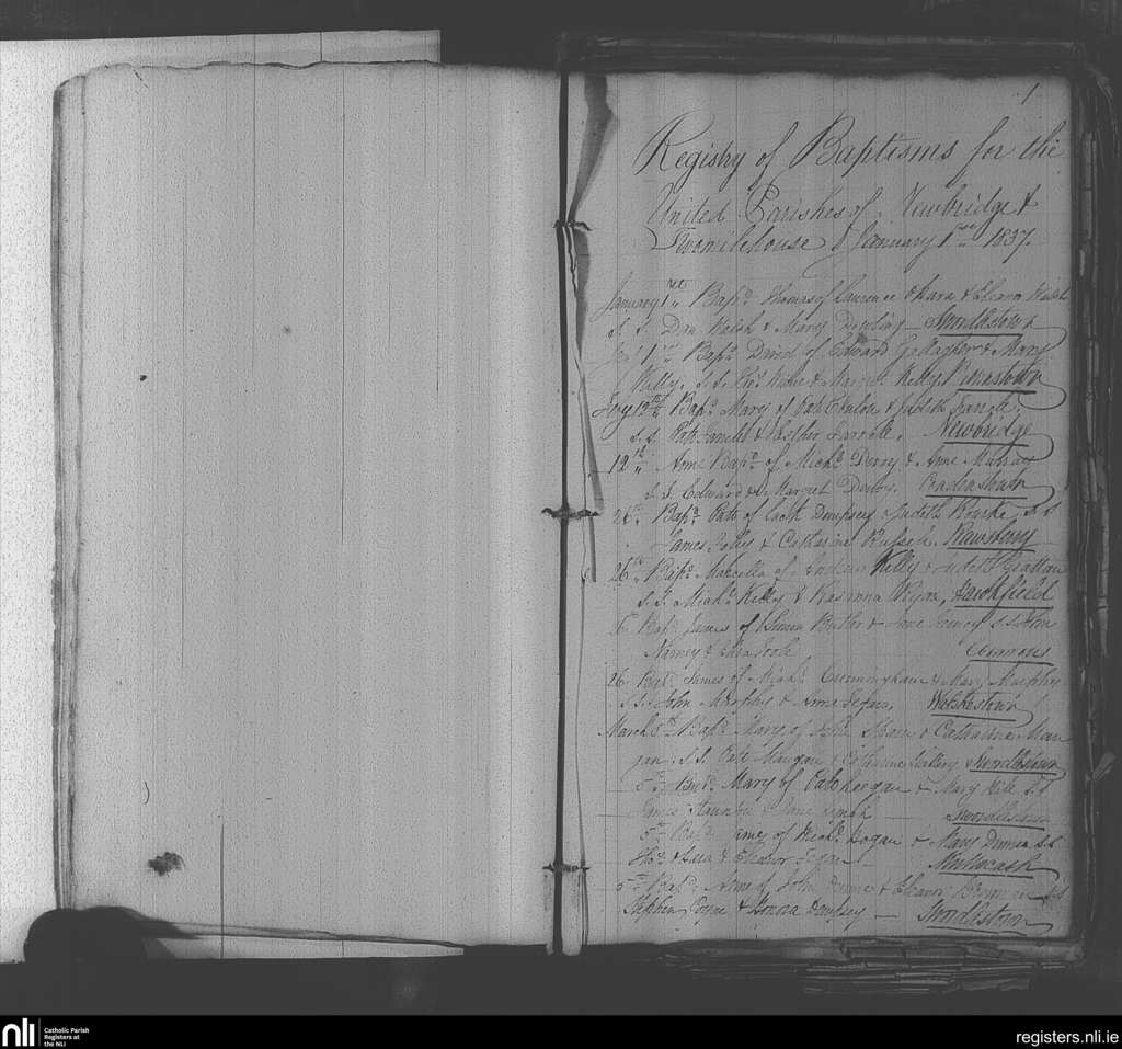 Newbridge; County of Kildare; Diocese of Kildare and Leighlin. Baptisms, Jan. 1837 to Mar. 1837