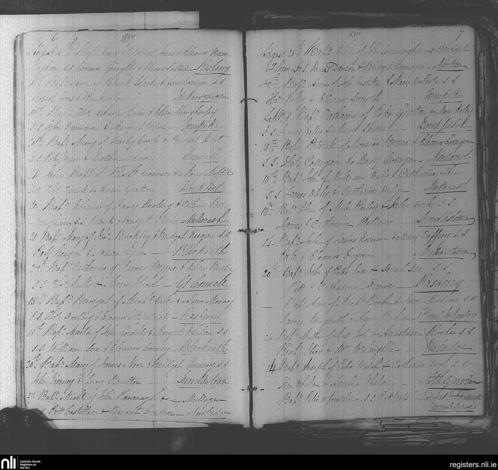 Newbridge; County of Kildare; Diocese of Kildare and Leighlin. Baptisms, Aug. 1837 to Sep. 1837