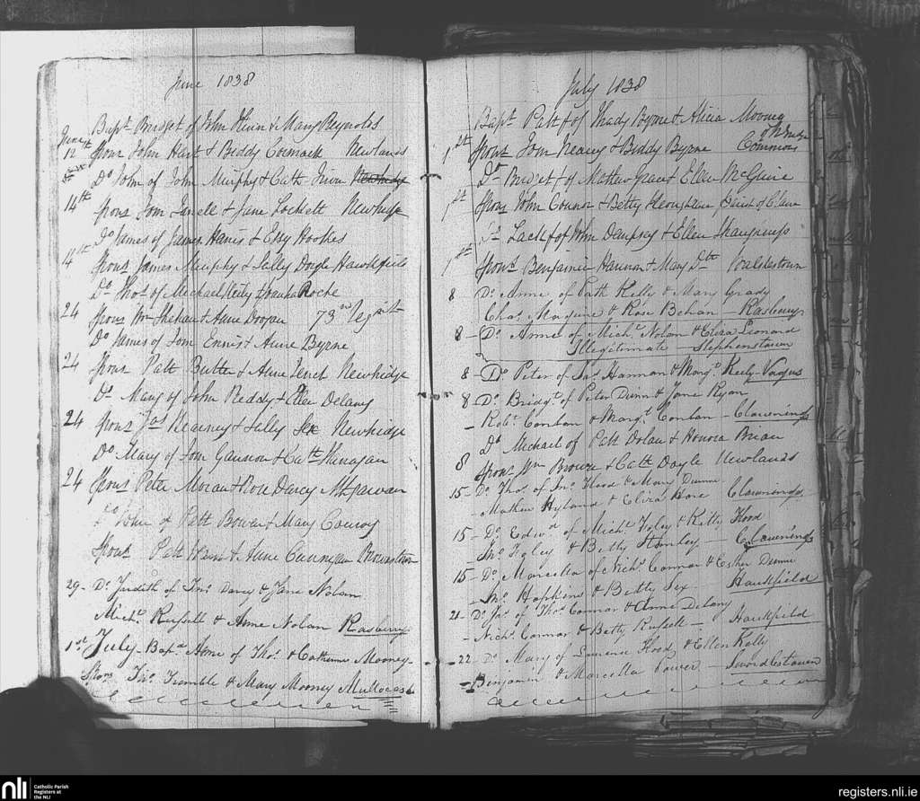 Newbridge; County of Kildare; Diocese of Kildare and Leighlin. Baptisms, June 1838 to July 1838