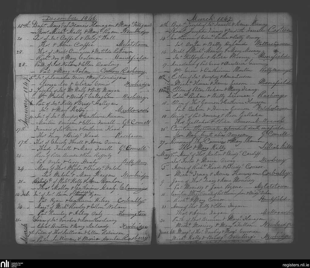 Newbridge; County of Kildare; Diocese of Kildare and Leighlin. Baptisms, Dec. 1846 to June 1847
