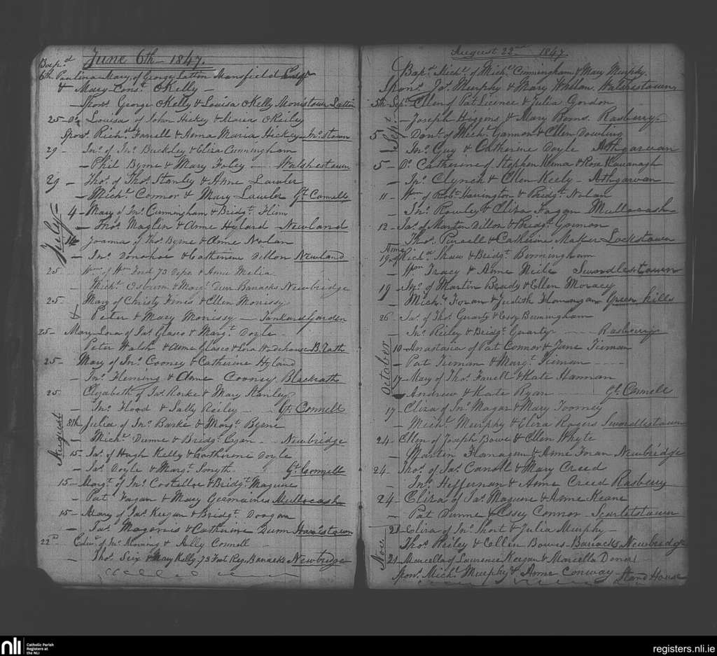 Newbridge; County of Kildare; Diocese of Kildare and Leighlin. Baptisms, June 1847 to Nov. 1847