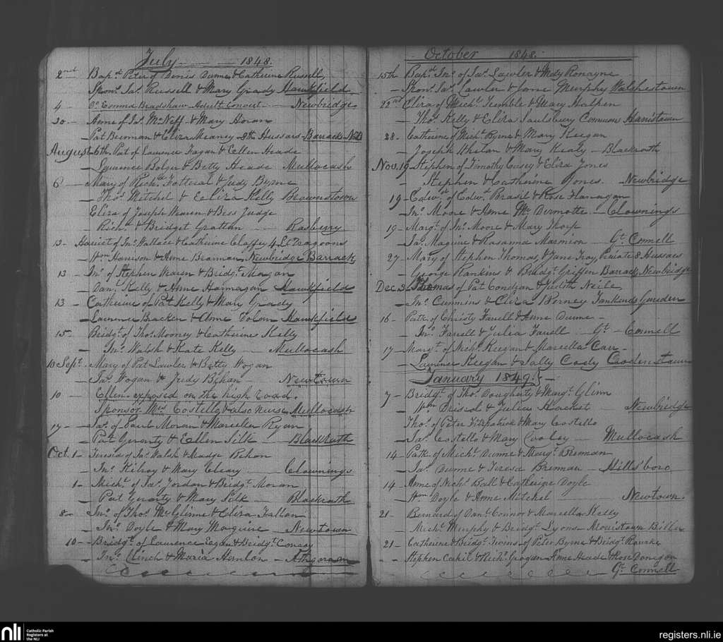 Newbridge; County of Kildare; Diocese of Kildare and Leighlin. Baptisms, July 1848 to Jan. 1849