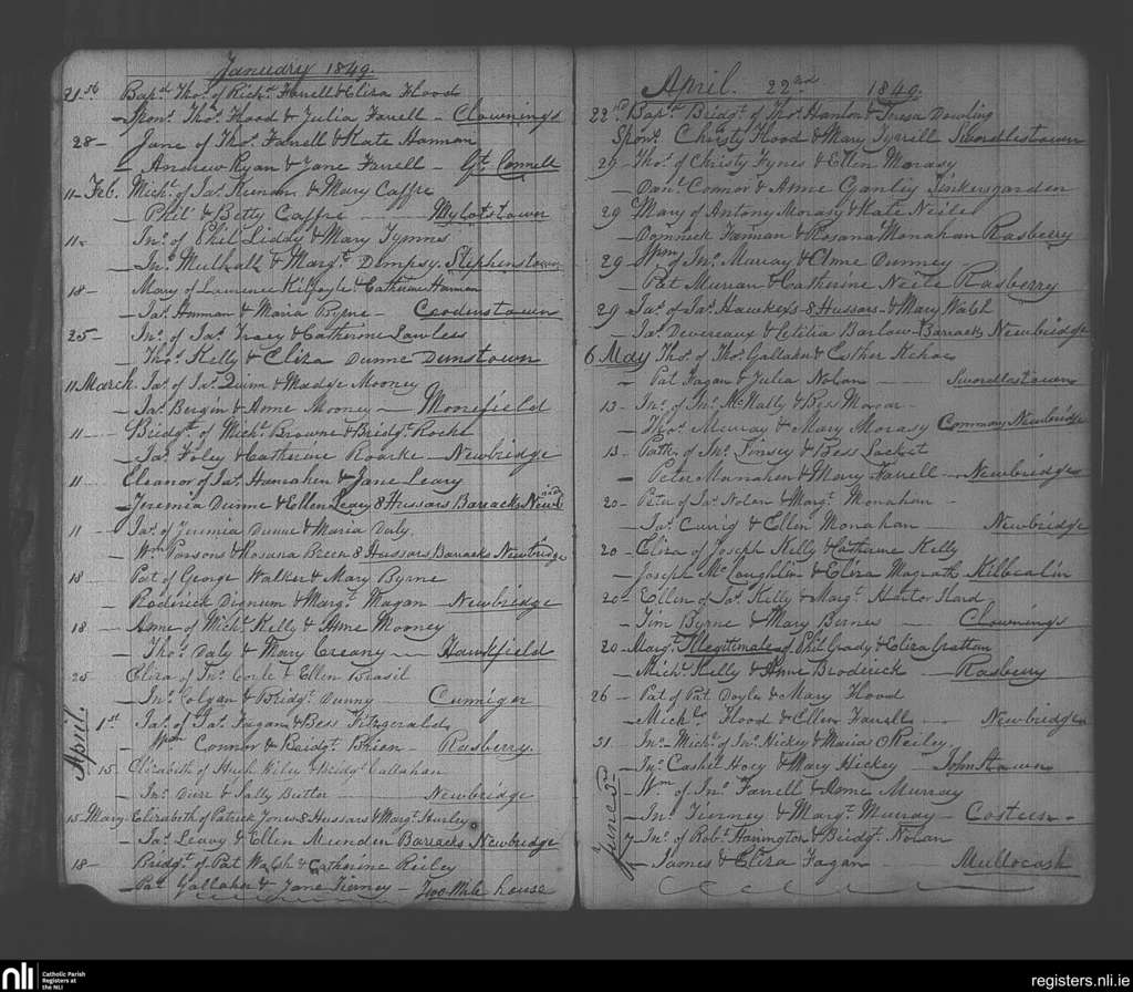 Newbridge; County of Kildare; Diocese of Kildare and Leighlin. Baptisms, Jan. 1849 to June 1849