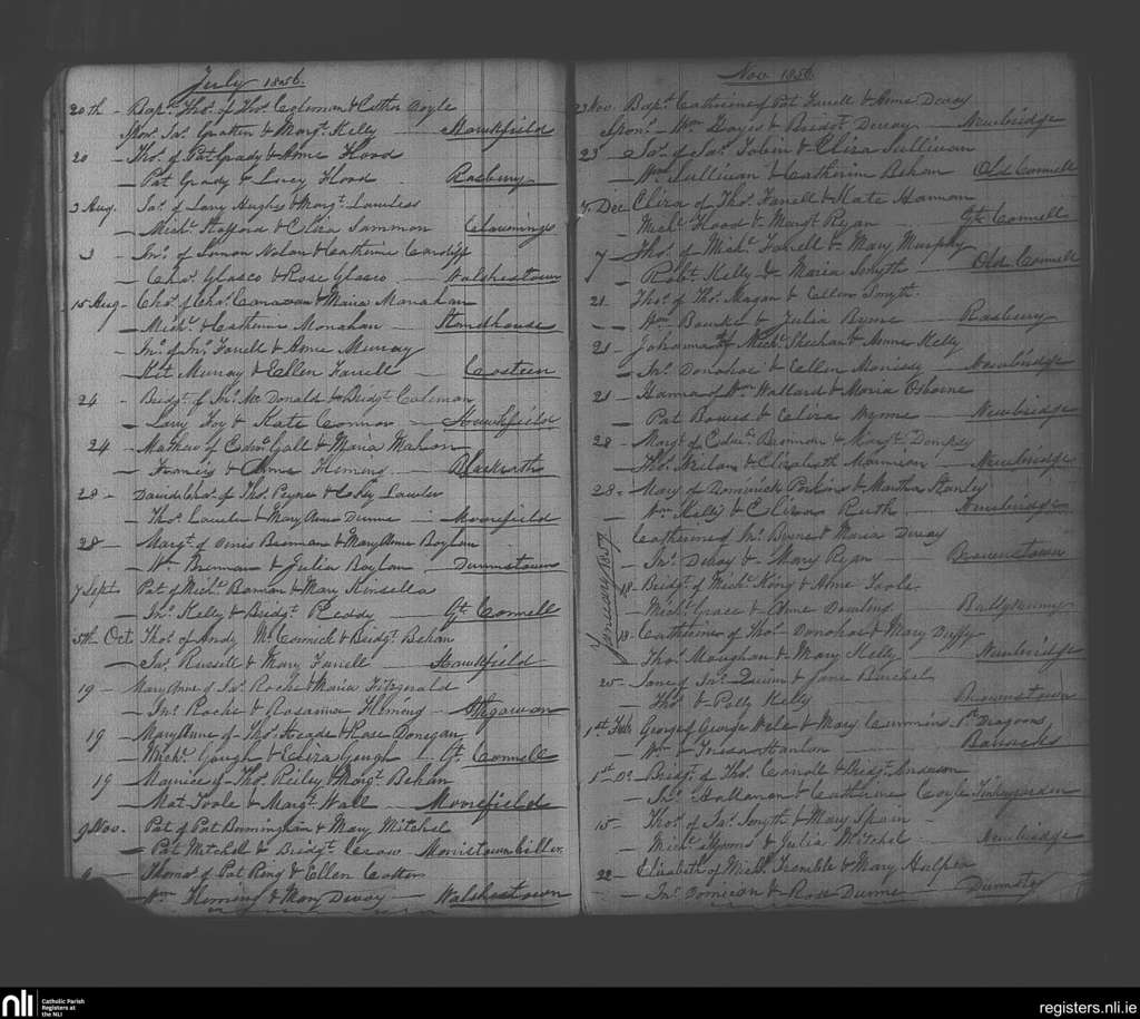 Newbridge; County of Kildare; Diocese of Kildare and Leighlin. Baptisms, July 1856 to Feb. 1857