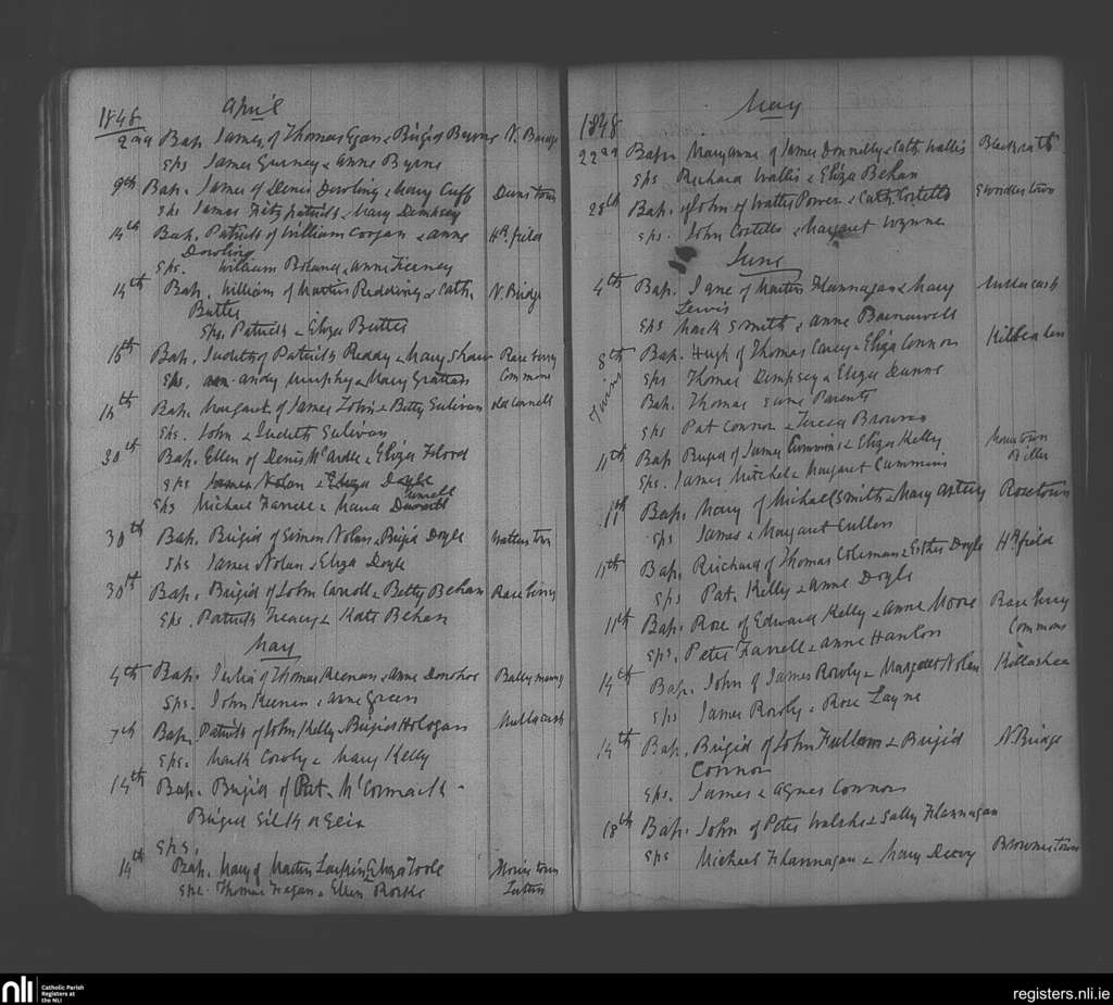 Newbridge; County of Kildare; Diocese of Kildare and Leighlin. Baptisms, Apr. 1848 to June 1848