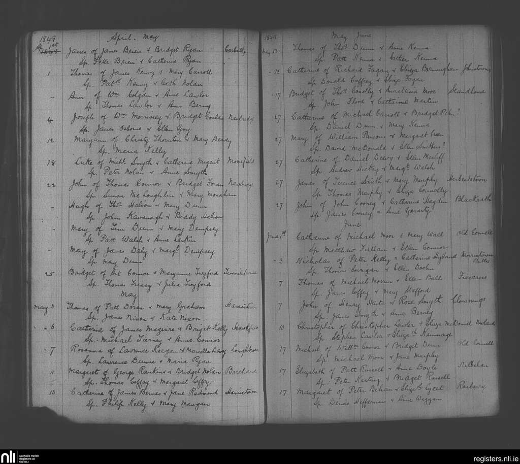 Newbridge; County of Kildare; Diocese of Kildare and Leighlin. Baptisms, Apr. 1849 to June 1849