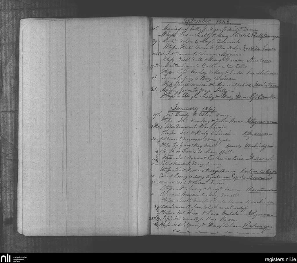 Newbridge; County of Kildare; Diocese of Kildare and Leighlin. Marriages, Sep. 1846 to Aug. 1847