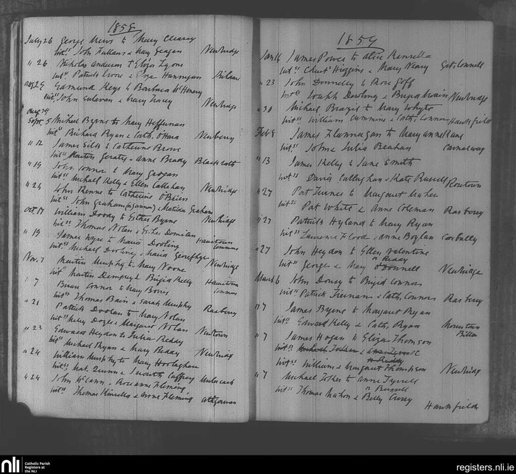 Newbridge; County of Kildare; Diocese of Kildare and Leighlin. Marriages, July 1858 to Mar. 1859