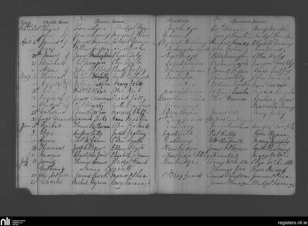 Newbridge; County of Kildare; Diocese of Kildare and Leighlin. Baptisms, Mar. 1851 to July 1851
