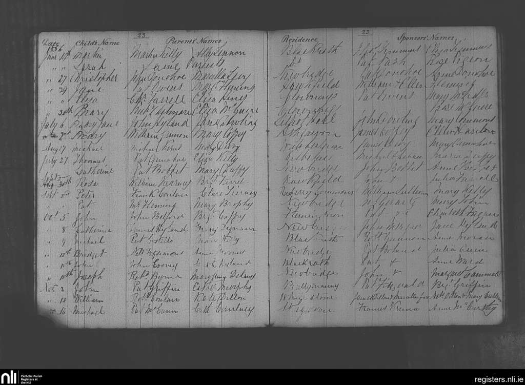 Newbridge; County of Kildare; Diocese of Kildare and Leighlin. Baptisms, June 1856 to Nov. 1856