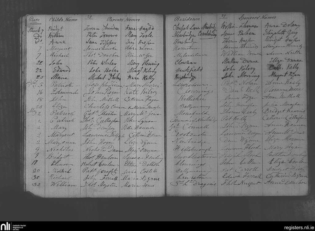 Newbridge; County of Kildare; Diocese of Kildare and Leighlin. Baptisms, Mar. 1858 to May 1858