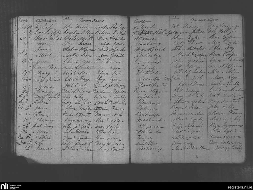 Newbridge; County of Kildare; Diocese of Kildare and Leighlin. Baptisms, Sep. 1858 to Dec. 1858