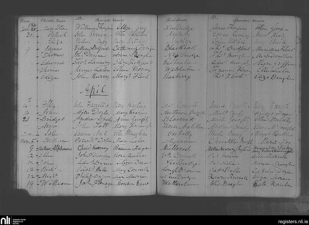Newbridge; County of Kildare; Diocese of Kildare and Leighlin. Baptisms, Mar. 1861 to May 1861