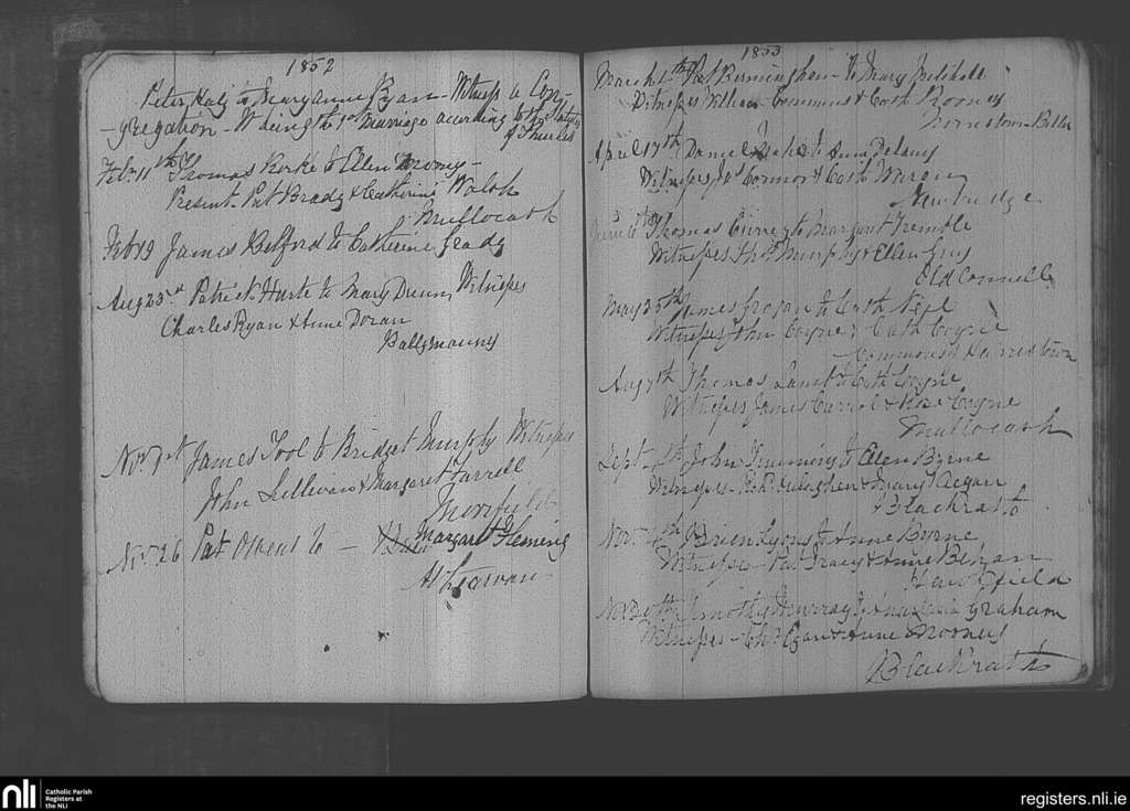Newbridge; County of Kildare; Diocese of Kildare and Leighlin. Marriages, Feb. 1852 to Nov. 1853