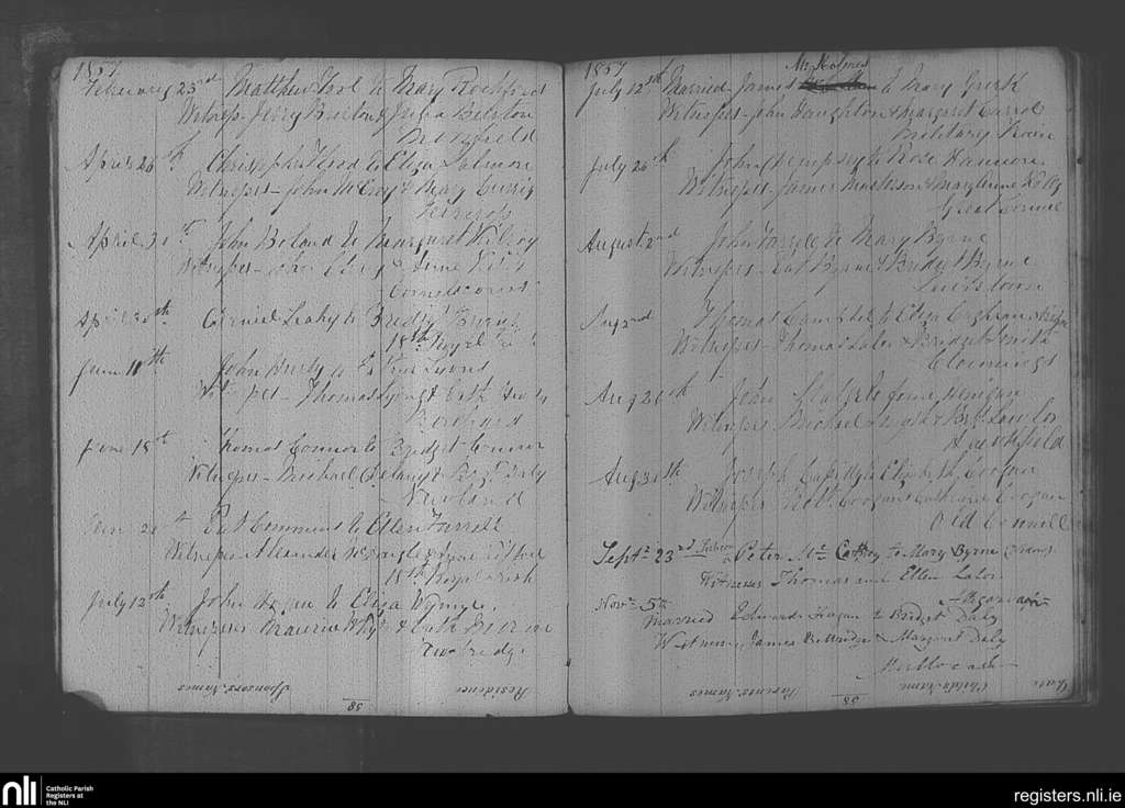 Newbridge; County of Kildare; Diocese of Kildare and Leighlin. Marriages, Feb. 1857 to Nov. 1857